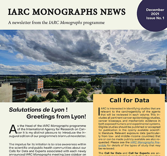 Le bulletin d’information des Monographies du CIRC (publié trois fois par an) a été lancé le 13 décembre 2021 pour marquer le 50e anniversaire de la première réunion des Monographies du CIRC.Lire le bulletin d’information des Monographies du CIRC