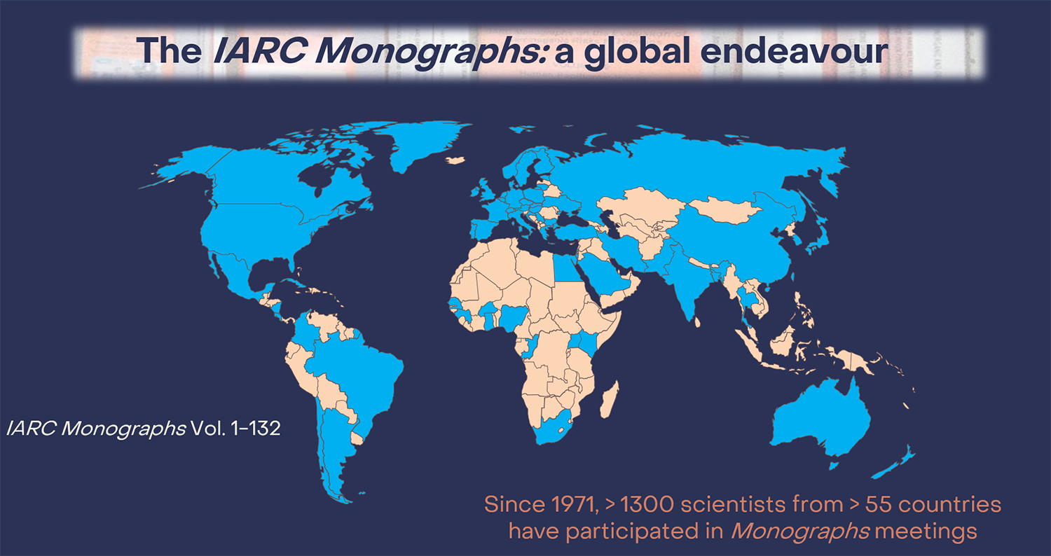 Since 1971, over 1300 scientists from more than 50 countries have participated in IARC Monographs meetings. Diversity in the Working Group has been increasing and the “Call for Experts” for each meeting now explicitly states that nominations are encouraged of scientists whose relevant publications may not be found through standard literature searches, of women, and of candidates from low- and middle-income countries.