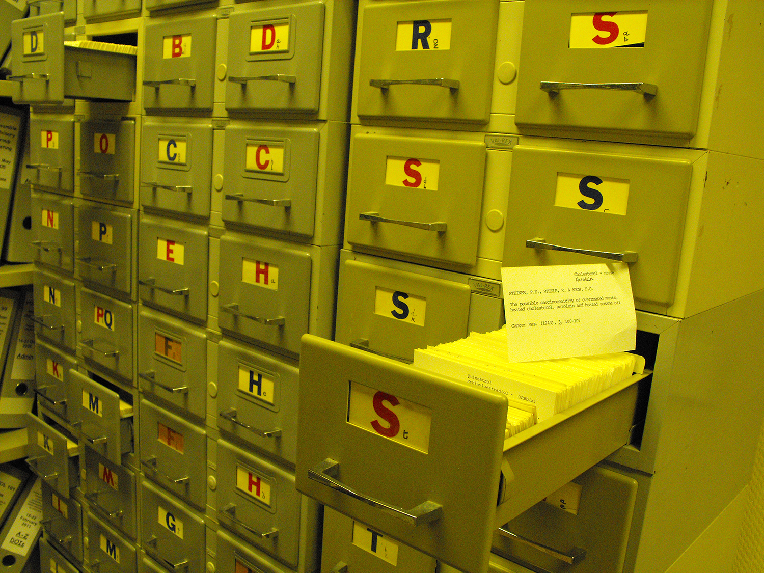 In the early years of the IARC Monographs programme, the development of a Monograph was primarily paper-based. References were catalogued on cards and stored on microfiche. All drafts, publications, and reports were printed before review by the Working Group. Text and figures were projected using an overhead projector. The final Monograph would have been typed up for printing.